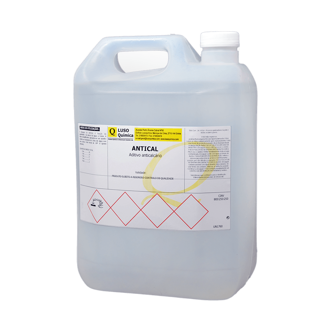ANTICAL é um produto formulado através de uma mistura de agentes queláticos, utilizado na complexação de sais de cálcio e magnésio da água evitando a formação de incrustações alcalinas.